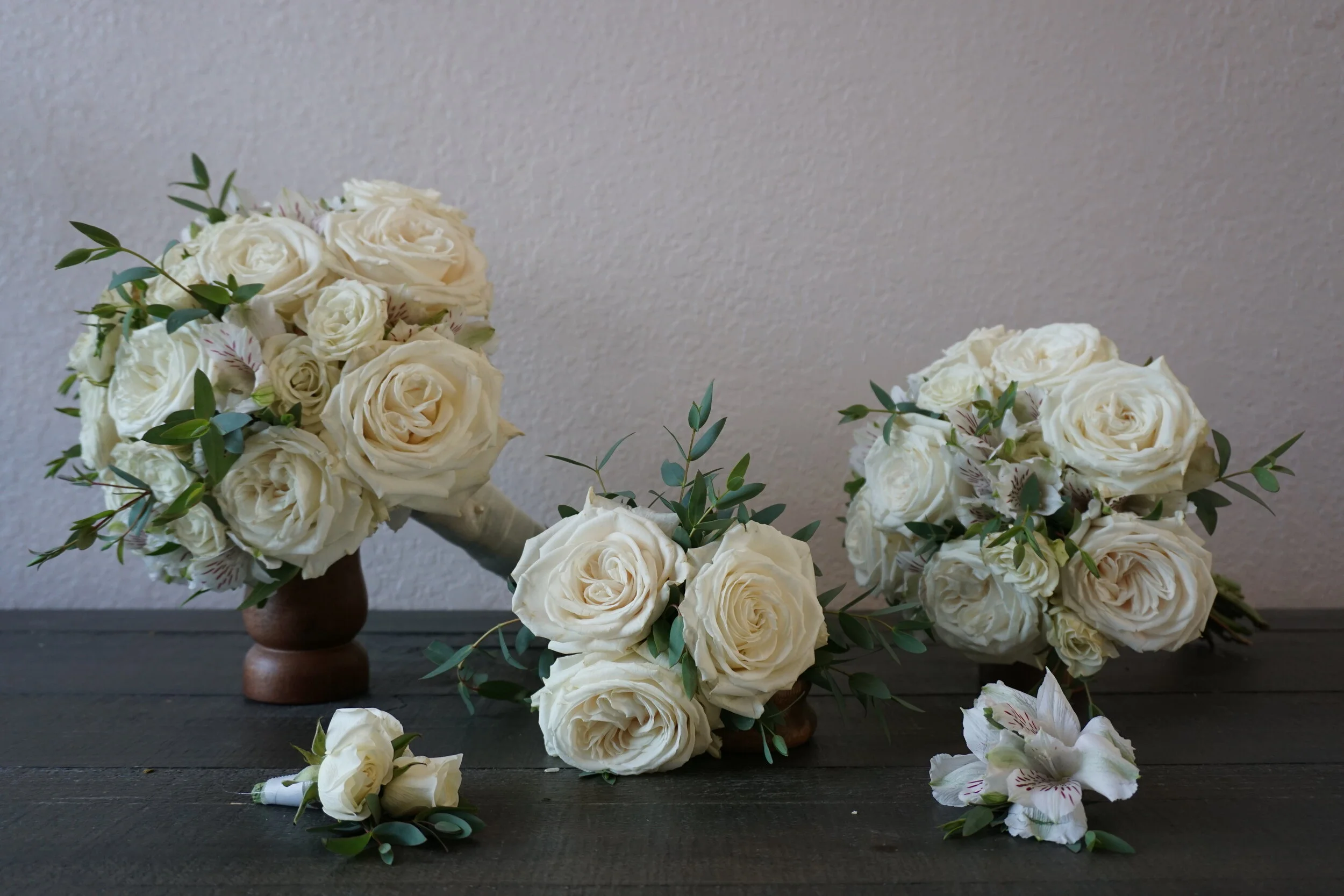 This beautiful combination of roses, spray roses and alstroemeria is classic and timeless. With a tight and compact design, this elegant bouquet can be completely customized to the colors of your wedding. This package can be used as a great starting place for determining the flowers you want to complete your special day.